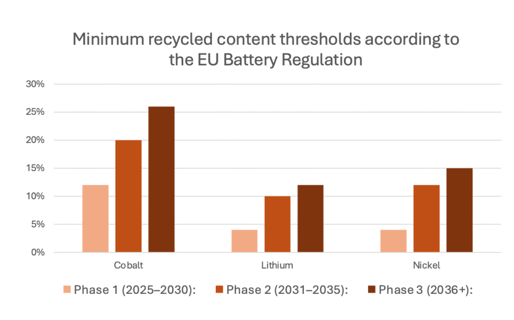 The EU Battery Regulation 2023/1542, implemented in 2024, fundamentally restructures recycling economics through mandatory minimum recycled content thresholds